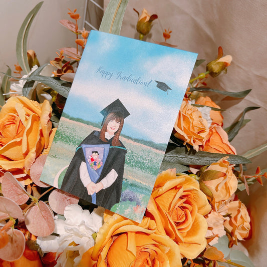 (畢業)人像畫賀卡 連燙金信封和蠟印章